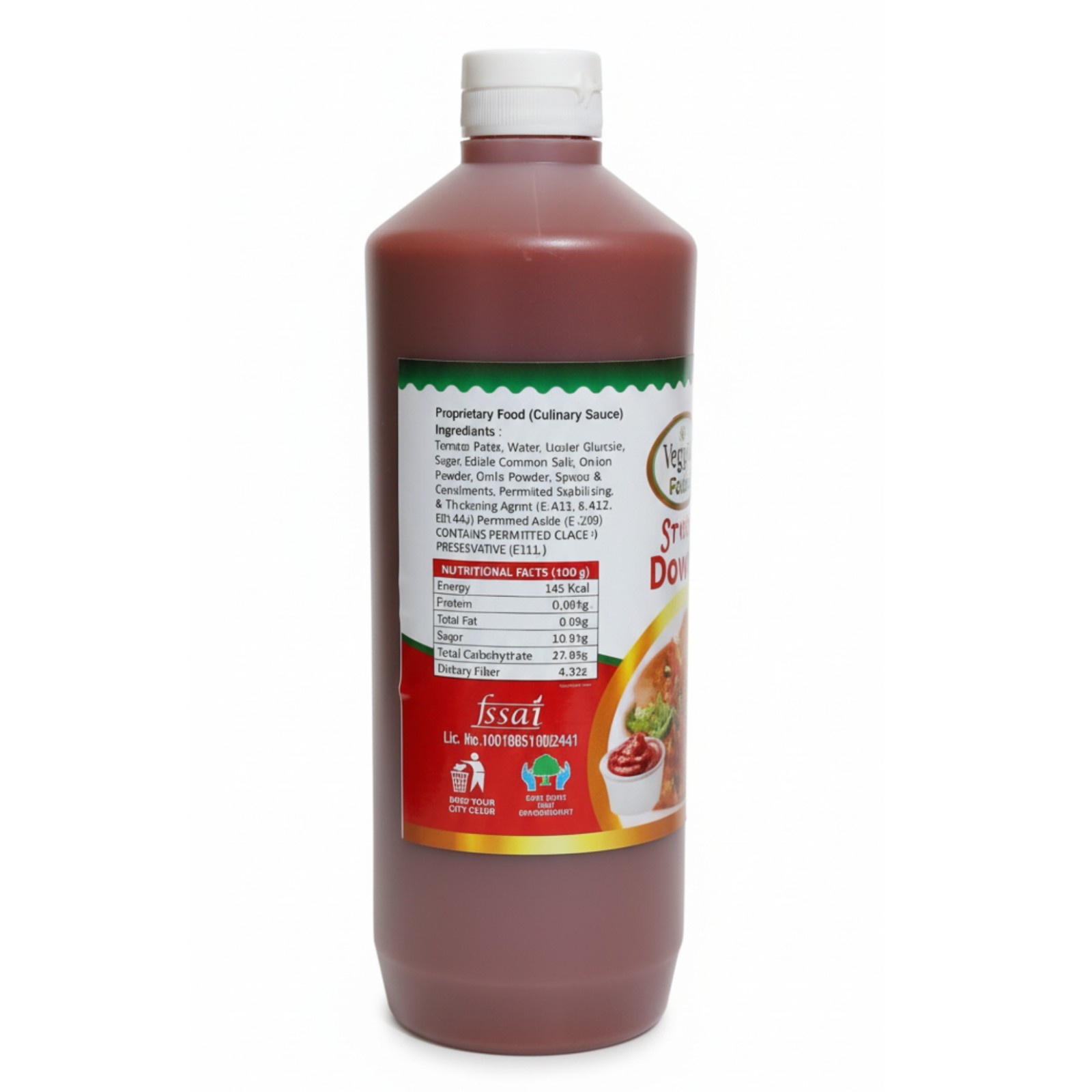 • Vegetarian & Certified Safe: 100% vegetarian, FSSAI licensed (No. 10018510241), and free from artificial colors. Contains permitted Class II preservatives (E211, E260) for longer shelf life without compromising taste.